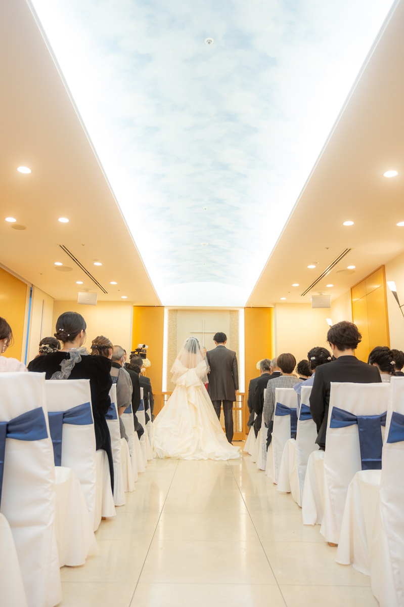 まっすぐ新郎 直也さんのもとへ向かうその姿にチャペルは感動に包まれました。