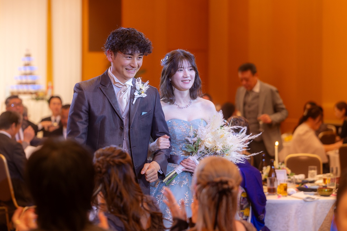 新婦が前日まで何度も修正し作成したムービーや新郎職場の方々の賑やかな余興など、あっという間に披露宴終了。